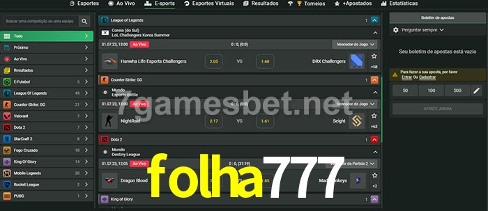 A aposta folha777 oferece aos jogadores a experiência mais conveniente de apostas em eSports!